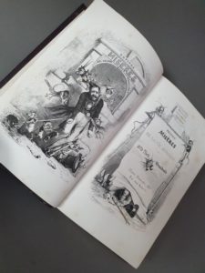 OLD NICK & GRANDVILLE. Petites misères de la vie humaine. Paris, H. Fournier, 1843. In-8, chagrin aubergine avec coins, dos orné, tranches dorées (Reliure de l époque). Charmante illustration gravée sur bois, l une des plus spirituelles de Grandville, comprenant 2 frontispices, 48 planches et de nombreuses vignettes dans le texte. Premier tirage. Jolie reliure de l époque. Quelques rousseurs claires.