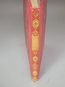 QUEVEDO (Francisco de). Pablo de Ségovie. El gran Tacano. Traduit par J.-H. Rosny. Paris, Édouard Pelletan ; Boulogne-sur-Seine, Daniel Vierge, 1902. In-4, demi-maroquin rouge avec coins, dos lisse orné d un décor doré et mosaïqué, tête dorée, non rogné, couverture et dos (Ch. Lanoë). 120 dessins de Daniel Vierge reproduits en héliogravure avec retouche des cuivres par l artiste. Tirage à 455 exemplaires, celui-ci UN DES 100 SUR CHINE contenant une suite de 4 aquarelles originales inédites de l artiste gravées à l eau-forte par G. Noyon, épreuves en triple état sur chine, et 8 FEUILLES DE CROQUIS ORIGINAUX AU CRAYON. Plaisant exemplaire, très bien relié, malgré de petites traces de cire sur les plats. De la bibliothèque Étienne de Cluzel.