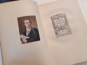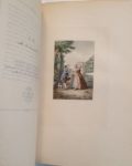 [RESTIF DE LA BRETONNE]. Monument du costume. Suites d estampes de Freudenberg & Moreau le jeune pour servir à l Histoire des modes & du costume en France dans le dix-huitième siècle. Paris, L. Conquet, 1881-1883. Ensemble 3 parties en un volume grand in-8, maroquin bleu, dentelle dorée, dos orné, dentelle intérieure, doublure et gardes de moire bordeaux, tranches dorées sur marbrure (Chambolle-Duru). 2 portraits et 36 figures en couleurs gravées sur cuivre par Dubouchet d après Freudenberg et Moreau le jeune. Tirage à 370 exemplaires : EXEMPLAIRE SUR JAPON comprenant les gravures en 3 ou 4 états, dont l eau-forte pure. SUPERBE EXEMPLAIRE, RICHEMENT RELIE PAR CHAMBOLLE-DURU. De la bibliothèque Georges Wendling.