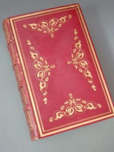 SAINT-PIERRE (Bernardin de). Paul et Virginie. Paris, Curmer, 1838. Fort volume grand in-8, maroquin rouge, encadrement orné de filets dorés, et quatre gros écoinçons rocaille, dos orné, encadrement intérieur orné de filets dorés, doublure et gardes de moire ivoire, tranches dorées (Simier). Célèbre édition, l un des fleurons du livre illustré romantique. L illustration comprend environ 450 vignettes gravées sur bois, 29 planches tirées sur chine monté et 7 portraits, sous serpente légendée, gravés par Tony Johannot, Isabey, Paul Huet, Marville, etc., et une carte coloriée de l île de France par Dyonnet. EXEMPLAIRE ENRICHI DE 33 GRAVURES ANGLAISES sur chine appliqué, 15 PLANCHES EN COULEURS DE BOTANIQUE et d UNE LETTRE AUTOGRAPHE SIGNEE DE BERNARDIN DE SAINT-PIERRE (une page in-8). Rousseurs. Dos un peu passé, un coin marqué.