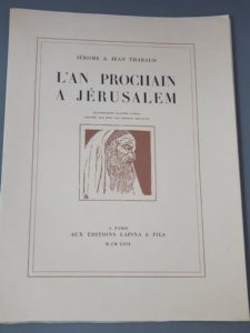 THARAUD (Jérôme & Jean). L An prochain à Jérusalem. Paris, Éditions Lapina & Fils, 1929. In-4, en feuilles, couverture, emboîtage de l éditeur. Première édition illustrée, ornée de gravures sur bois en couleurs, or et argent par André Suréda. Tirage à 435 exemplaires, celui-ci UN DES 25 SUR JAPON IMPERIAL REIMPOSES.