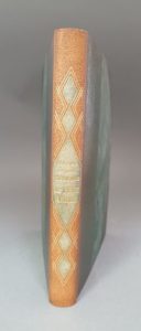 THARAUD (Jérôme & Jean). La Fête arabe. Paris, Éditions Lapina, 1926. In-4, demi-maroquin olive avec coins, dos lisse orné d un décor géométrique doré et mosaïqué, tête dorée, non rogné, couverture et dos (René Kieffer). Première édition illustrée, ornée de 32 bois en couleurs et en noirs par André Suréda. Tirage à 450 exemplaires, celui-ci sur papier de Rives. Dos passé.