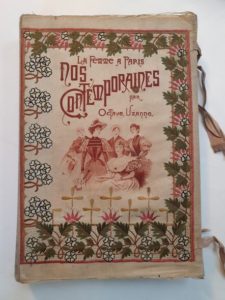 UZANNE (Octave). La Femme à Paris, Nos contemporaines, notes successives sur les Parisiennes de ce temps dans leurs divers milieux, états et conditions. Paris, Ancienne maison Quantin, May & Motteroz, 1894. Grand in-8, broché, couverture illustrée rempliée, non rogné, chemise de soie brochée à lacets (Reliure de l éditeur). Édition originale, ornée de très nombreuses illustrations de Pierre Vidal et d une superbe couverture en imprimée couleurs de Léon Rudnicki. EXEMPLAIRE SUR JAPON, conservé dans sa charmante chemise de soie brochée. Cahier 13 détaché, dos cassé au milieu du volume. Soie de la chemise un peu élimée sur les bords, un coin plié.