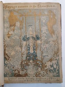 UZANNE (Octave). Voyage autour de sa chambre. Paris, Henry Floury, 1896. In-4, bradel demi-maroquin bleu nuit avec coins, dos lisse orné d un fleuron et portant le titre doré, non rogné, couverture (Reliure de l époque). Belle édition entièrement gravée à l eau-forte d après des compositions de Henri Caruchet, les pages décoratives rehaussées à l aquarelle. Très jolie couverture de Henry Thiriet. Tirage à 210 exemplaires pour les Bibliophiles indépendants, celui-ci un des 200 de souscription contenant une suite en noir avec remarques. De la bibliothèque Paul Gavault, avec son ex-libris. Rousseurs et piqûres.