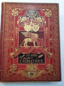 YRIARTE (Charles). Les Bords de l Adriatique et le Monténégro. Venise, l Istrie, le Quarnero, la Dalmatie, le Monténégro et la rive italienne. Paris, Hachette et Cie, 1878. In-4, demi-chagrin rouge, plats de percaline rouge, très grande plaque dorée couvrant les plats, dos lisse orné, tranches dorées (Reliure de l éditeur). Édition originale, illustrée de 257 gravures sur bois et de 7 cartes. Luxueuse reliure de l éditeur, ornée de grandes plaques décoratives de A. Souze. Quelques rousseurs. Minimes frottements aux coiffes et à un mors.