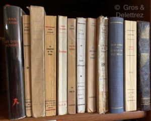 d'ESME Jean, écrivain spécialiste du roman colonial. Ensemble de 12 titres reliés et brochés. Leclerc, 1948 / A travers l'Empire de Menelik, 1928 / Les Dieux Rouges, 1955 / Le Conquérant de l'Ile Rouge, 1945 / Fièvres, 1955 / La Grande Horde, 1948 / Le soleil d'Ethiopie, 1938 / Les chevaliers sans éperons, 1940 / Les maîtres de la brousse, 1932 / Que la vie est belle, 1938 / Sables de feu, 1949 / L'homme des sables, 1930.