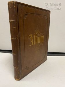 Album publié par la Maison Goupil, Galerie d’art et Maison d’édition, dirigée par Adolphe Goupil qui assure à partir de 1859, une diffusion de l’œuvre de Gérôme par le biais de l’estampe et de la photographie. Envoi d'Albert Goupil. Deux pages s'ouvrent difficilement.