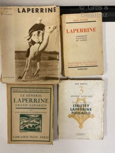 [SAHARA - LAPERRINE] Ensemble de documents du Général Laperrine, explorateur, fondateur des Méharistes, général de division et ami de Charles de Foucauld, et de 4 volumes sur lui. - Laperrine