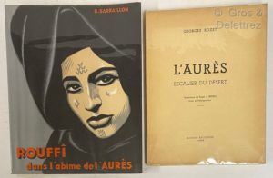 Il est joint "L'Aurès, Escalier du désert" de Rozet (1935, broché, illustré de dessins de Roger Irrièra tirés en héliogravure, et d'une carte dépliante).