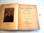 LES BOURBONS de France par Amédée de Cesena. Paris 1886, in-4, reliure tissus éditeur aux armes de France, un peu usagée. Portrait du Comte de Paris en frontispice (photographie collée).