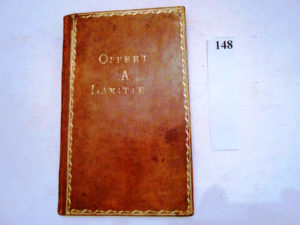 veau glacé, époque, dos lisse orné, encadrement sur les plats, inscription en lettres dorées : "Offert à l'Amitié".