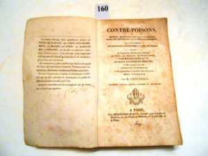 CONTRE-POISONS, mis à la portée des personnes étrangères à l’art de guérir, ou moyens reconnus les plus efficaces dans les différents cas d'empoisonnement par H. CHAUSSIER, Paris, 1819, un volume in-8° broché de 196 pages, signature...