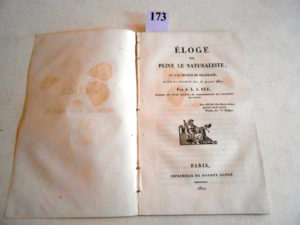 PHARMACIE - Eloge de PLINE LE NATURALISTE, lu à la Société de PHARMACIE par A.L.A FEE correspondant de l’Académie de NANCY. Paris 1821, plaquette in-8 brochée de 33 pages.