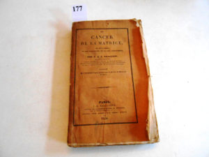 LE CANCER DE LA MATRICE, de ses causes, de son diagnostic et de son traitement, par P.J.S TEALLIER. Paris, Baillière, 1836, un volume in-8, broché, fortes mouillures aux 40 dernières pages. Non coupé.