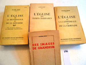 Daniel ROPS de l’Académie Française, (né le 19 janvier 1901 à EPINAL). L’EGLISE DES TEMPS BARBARES. Fayard 1950 – L’EGLISE de LA CATHERALE et de LA CROISADE. Fayard 1952 – L’EGLISE de LA RENAISSANCE et de LA REFORME. Fayard 1955. 3...