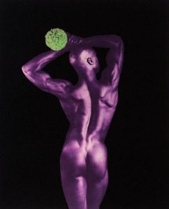 Photogravure monochrome avec aquarelle et flocage sur papier signé au crayon et numéroté 17/60 sous l’image, encadré, édité par Robert Mapplethorpe et Deli Sacilotto. Image : 55 x 45 cm ; cadre : 82,5 x 68,5 cm Provenance Vente Chayette et Cheval, Paris, 5 juin 1996. Très intrigué par les possibilités de la photogravure, un procédé photographique du 19e siècle presque abandonné, Robert Mapplethorpe a initié une collaboration avec GraphicStudio en Floride qui lui avait donné un nouvel essor dans les années 80. La multiplicité des tonalités et les détails des ombres étaient parfaits pour l’interprétation des études de nus de Mapplethorpe. Ses photogravures ont permis de renouveler ce magnifique procédé.