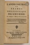 L'Andrometrie, ou examen philosophique de l'Homme. Paris : Brunet, 1753.