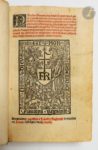 Très belle impression en lettres gothiques par Jean Barbier pour François Regnault. Le titre, imprimé en rouge et noir, comporte la belle et grande marque de ce dernier.