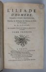Édition originale de la traduction estimée de Paul-Jérémie Bitaubé (1732-1808), qui sera plusieurs fois rééditée. Elle est illustrée du buste d'Homère gravé en frontispice du tome 1 de L'Iliade, et d'une planche dépliante représentant le « Bouclier d'Achille tel qu'il est décrit dans Homère ».