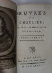 - CHAULIEU (Guillaume Amfrye de). Œuvres de Chaulieu, d'après les manuscrits de l'Auteur. La Haye : Gosse Junior, 1777. — 2 volumes petit in-12, maroquin vert foncé, roulette dorée en encadrement sur les plats, dos lisse orné, roulette dorée intérieure, tranches dorées (reliure de l'époque).
