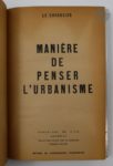 - LE CORBUSIER. Manière de penser l'urbanisme. [Boulogne] : Éditions de l'architecture d'aujourd'hui, [1946]. — In-8, demi-box noir, plat de papier argenté découpé pour former une figure géométrique noire continuée sur le box à l'aide de filets argentés, dos lisse, couverture et dos conservés (reliure moderne).