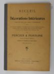 - PERCIER & FONTAINE. Recueil de Décorations Intérieures Comprenant tout ce qui a rapport à l'Ameublement comme : Vases, Trépieds, Candélabres, Cassolettes, Lustres, Girandoles, Lampes, Chandeliers, Cheminées, Feux, Poëles, Pendules, Tables, Secrétaires, Lits, Canapés, Fauteuils, Chaises, Tabourets, Miroirs, Ecrans, etc., etc. Paris : Armand Guérinet, [vers 1900]. — In-4, en feuilles, chemise cartonnée de l'éditeur.