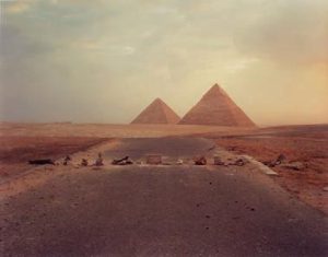 Richard Misrach 1949 40 Road Blockade and Pyramids, 1989.