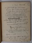 à René Chalupt // au poète le plus fin, dont l'esprit // d'à propos fait un poème du moment // ce petit livre sans “croisade antialcoolique” // ni “délire pacifiste” - son amazone // corrigée - antérieurement - de ces “commencements humains”. Et qui // s'observe dans le plus pur miroir // critique afin de ne plus pêcher contre la // ressemblance qu'elle lui doit ! // Sa reconnaissante admiratrice // Natalie Clifford Barney // (qui restera rue Jacob le 7 et le 21 dès 4 // heures dans l'espoir de l'accueillir avant // les autres) // Paris 5 avril 1922 - // - J'ai confié ces pages oubliées, afin d'évoquer // votre pensée parmi ces écrits - me relire // ainsi accompagnée me renouvelle à moi // même - mais que de simples aveux ! // N. C. B.