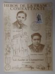 - Encart illustré et oblitéré sur soie, dédié aux fusillés de Chateaubriant, tiré à 2250 exemplaires.