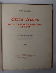 CLAUDEL (Paul) CLAUDEL (Paul). Cette Heure qui est entre le printemps et l’été. Cantate à trois voix. Paris …