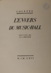 COLETTE COLETTE. L'Envers du music-hall. Paris : Au sans pareil, 1926. — In-4, broché, couverture …