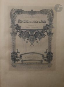 Paris : Société d'Éditions d'Art, “Le Livre et l'Estampe”, [1903]. — In-8, reliure de soie brochée rose à motifs de bandes florales verticales en couleurs, dos lisse, tête dorée, non rogné (reliure de l'époque).
