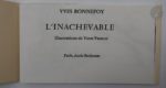 - BONNEFOY (Yves). L'Inachevable. Paris : École Estienne, [1999]. — In-12 oblong, en feuilles, couverture rempliée.