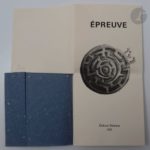 - BRIS (Emmanuel). Épreuve. Paris : École Estienne, 1993. — In-12 carré, en feuilles, couverture rempliée.