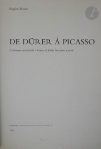 - ROUIR (Eugène). De Dürer à Picasso. L'estampe occidentale à travers le fonds Suzanne Lenoir. Louvain-la-Neuve : Martial, Musée de Louvain-la-Neuve, 1994. — In-4, cartonnage toile grise illustrée de l'éditeur, sous jaquette illustrée.
