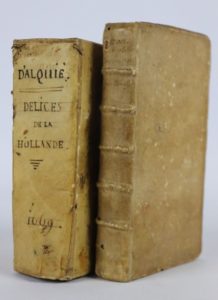 Joint : PARIVAL. Les délices de la Hollande. Amsterdam, Ravestein. 1669. In-12, vélin à rabats, titre manuscrit au dos. Petites taches et accrocs.