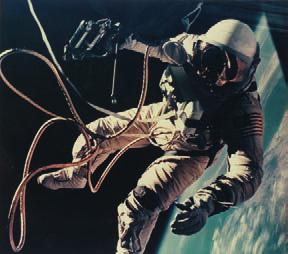 Nasa Ed White’s Extra vehicular, activity during 3rd Orbit of 4 days mission, Ed White marchant dans l’espace au-dessus du Nouveau Mexique, 3 juin 1965.