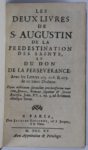 -Les Deux livres de Saint Augustin. De la prédestination des saints et Du Don de la persévérance. Paris, Estienne, 1715. In-12, veau ép., dos à nerfs orné. Défauts à la reliure. Relié avec : Le Livre de saint Augustin, de L'esprit et de la lettre. Paris, Coignard, 1725.
