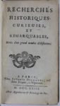 -Recherches historiques, curieuses et remarquables. Paris, Deshayes, 1723. In-12, veau ép. dos à nerfs orné. Rel. frottée.
