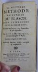MENESTRIER. La Nouvelle méthode raisonnée du blason. Lyon, Lions, 1718. In-12, veau ép., dos à …