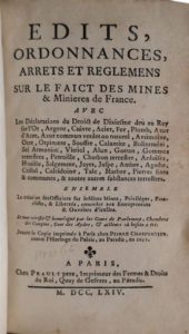 MINES. ÉDITS, ordonnances, arrets et reglemens sur le faict des Mines et Minieres de France, Avec …