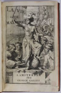 PRIDEAUX. La Vie de Mahomet. Amsterdam, Gallet, 1698. In-12, veau ép., dos à nerfs orné de pièces d'armoiries, armes dorées au centre des plats.