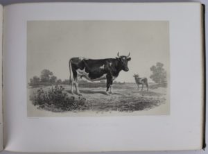 Atlas seul : 87 planches imprimées par Lemercier : ces figures de vaches ont été réalisées par de nombreux artistes ; dessinées par Barye, Van Marcke, Mélin, Roza Bonheur... Elles ont été gravées par divers sculpteurs comme Riffaut, Oudet, Nègre, Rebel, Clergé