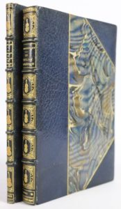 CHAMPFLEURY. Le violon de faience. Paris, Conquet, 1885. In-12, demi-reliure à coins en cuir bleu, dos à 5 nerfs, caissons ornés de dorure représentant des violons mosaïqués, filets dorés sur les plats (Champs).