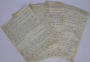 - une lettre autographe signée, d'une écriture très lisible, comprenant quelques corrections, de 5 feuillets in-4, du peintre Giorgio de Chirico à un comte, très probablement le comte de Ricaumont, datée du 16 août 1952. Il répond à 5 questions sur la peinture : n1 . Pourquoi condamnez-vous la peinture moderniste , de Cézanne à Gauguin ? n4. Quelle est votre position en face de Picasso ? Des surréalistes Ernst et Dali, de l'art abstrait ? Giorgio de Chirico s'étonne que les Nouvelles Littéraires, «revue snob et moderniste », veuillent publier son interview.
