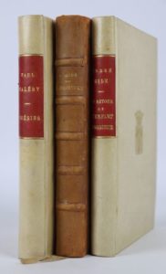 VALERY (Paul). Poésies. Paris, La Nouvelle Revue française, (1931). In-12, cartonnage blanc à la Bradel, armes dorées de Jacques de Ricaumont au centre des plats, dos lisse, pièce de titre de maroquin rouge, tête dorée, couvertures et dos conservés.