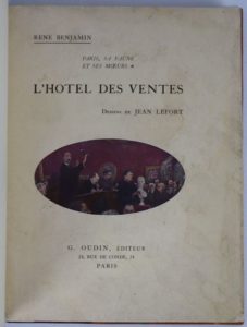 - BENJAMIN. René. L'Hotel des ventes. Paris. Oudin. 1914. In-8, demi-chagrin brun, tête dorée, couvertures et dos conservés. Dessins de Jean Lefort.