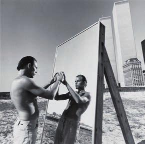 Arthur Tress 1940 Homme devant un miroir, devant les Twin Towers du World Trade Center, New York, ca. 1980.
