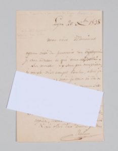 Jean Just Noël Antoine AUNIER (1784-1859), botaniste lyonnais, l'un des fondateurs de la Société linnéenne de Lyon. L.A.S. à Alfred Moquin-Tandon (1804-1863), botaniste. Lyon, 20 décembre 1838. 1 p. in-8. Adresse au dos.