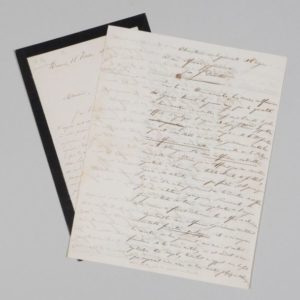 On joint une lettre autographe de la bru de Joseph Durocher, signée « Veuve Durocher ». Rennes, 18 Octobre 1872. 1 p. in-8. Encre brune sur feuillet double de papier deuil vergé. Elle a conservé peu d'écrits de son beau-père « ses papiers ayant été portés à la Faculté après sa mort, il en est resté assez peu à sa famille », mais elle fait parvenir à son correspondant l'article sur les eaux sulfureuses des Pyrénées.